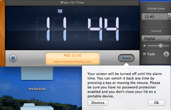 Wake Up Time(ウェーク アップ タイム)は、Macの無料目覚まし時計アプリです。昼休みや勉強の合間、残業中など睡魔に襲われるとき、効率よく作業をするために思い切って5分、10分仮眠し、このアプリで再び目を覚ますとすっきりした頭でやるべきこともはかどるのではないでしょうか。